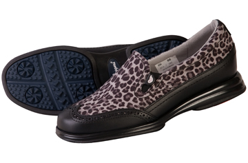 + Slip-on low-cut styling features two elastic gores for a snug fit and leather upper with vinyl leopard print accent.